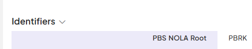 - PBS NOLA Root- Alpha Characters that make up complete NOLA code identifier for broadcast