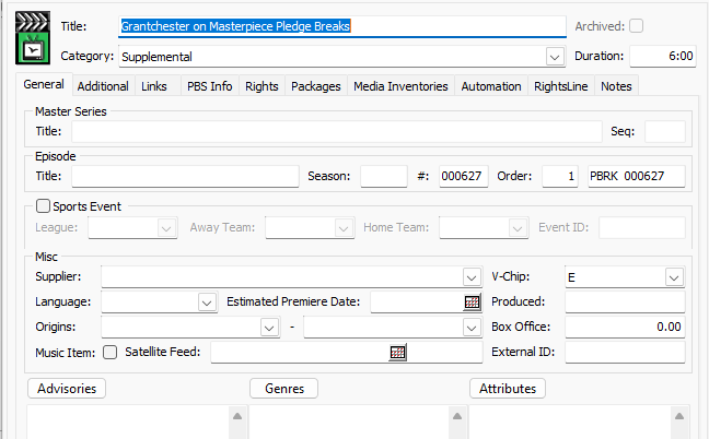6. Confirm the PBS Traffic ID is populated on Supplemental Records. | Click in BV and check the episode is with episode category as Supplemental.