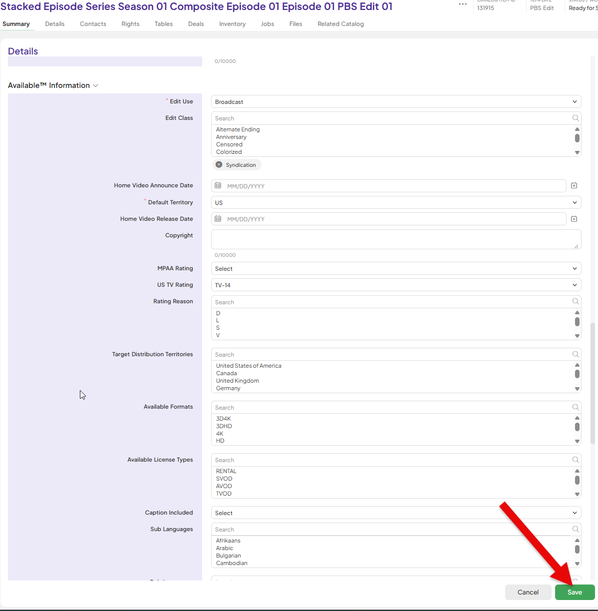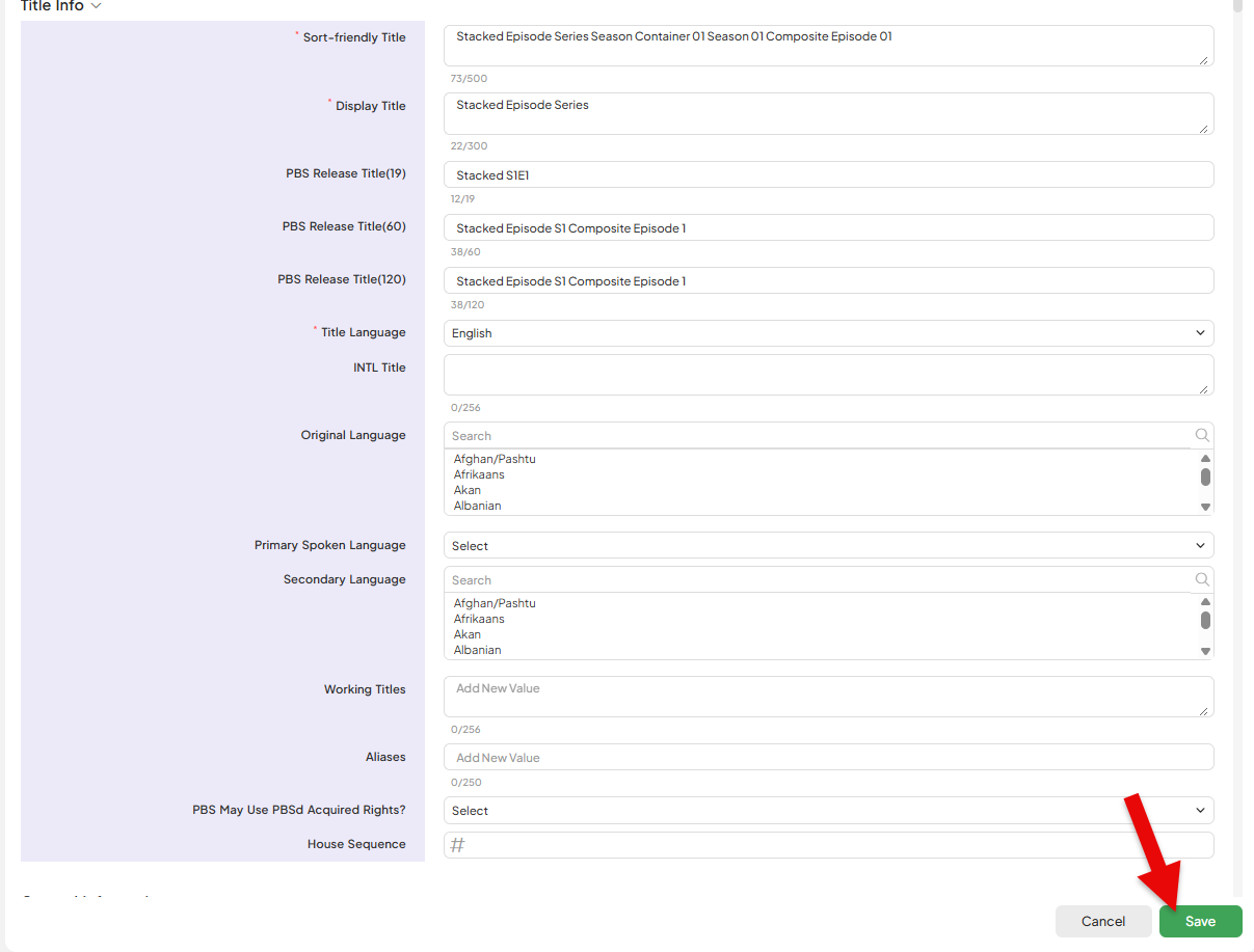 | 10. Fill out PBS Edit of the Composite Episode. Click Save. | ![]() ![]() |