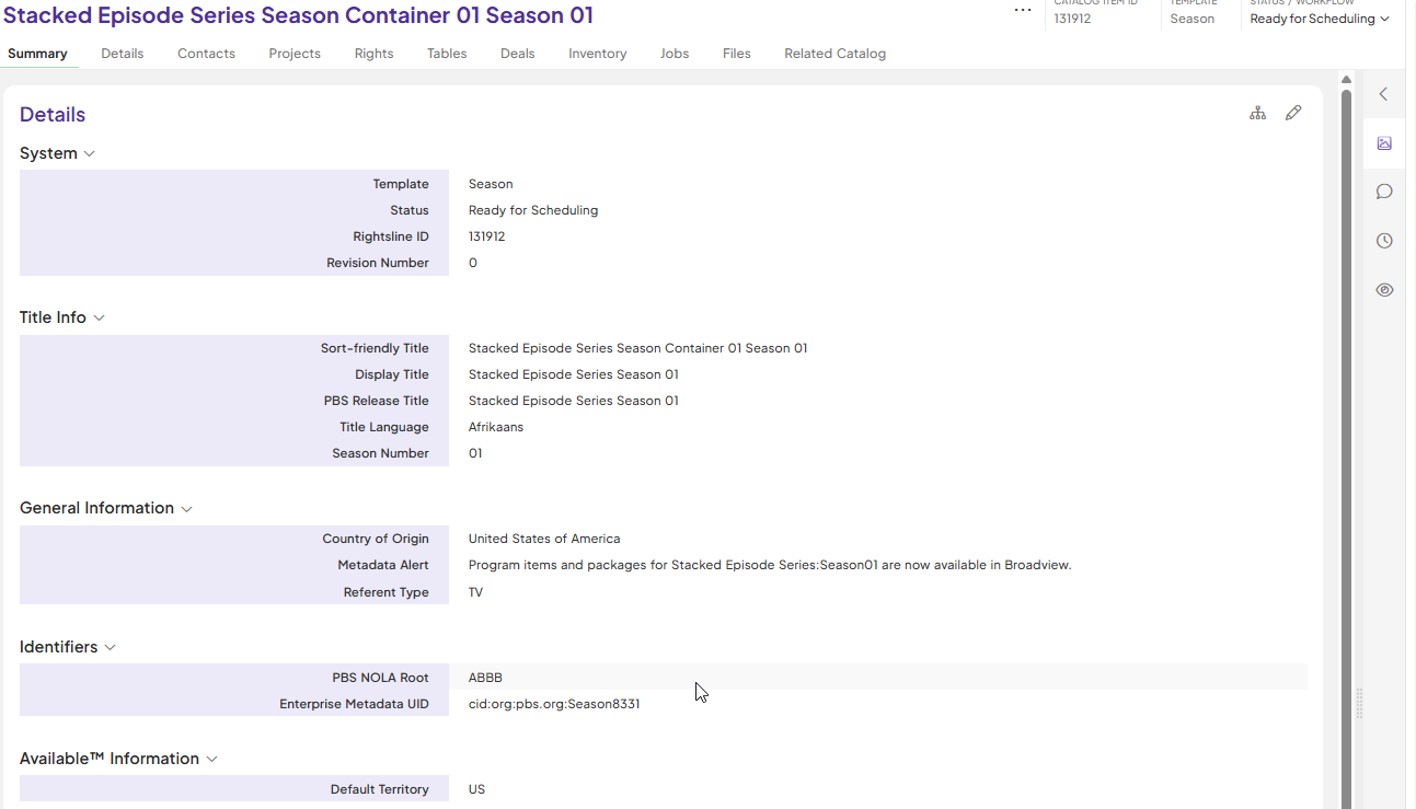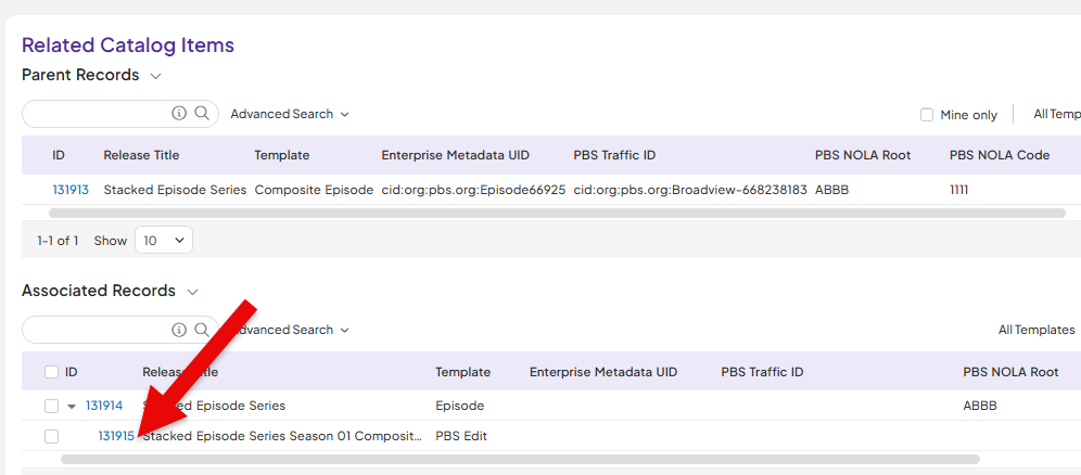 | 12. Enterprise Metadata Bank ID and PBS Traffic ID are populated on Catalog Items. | ![]() |