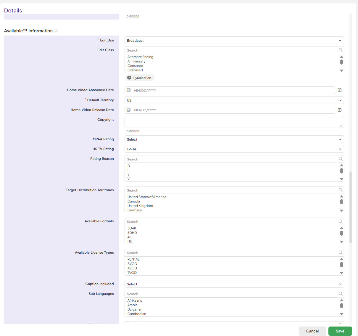 - Deal information is entered in Rightsline.