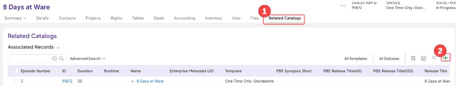 | From Related Catalog section, associate appropriate parent record.