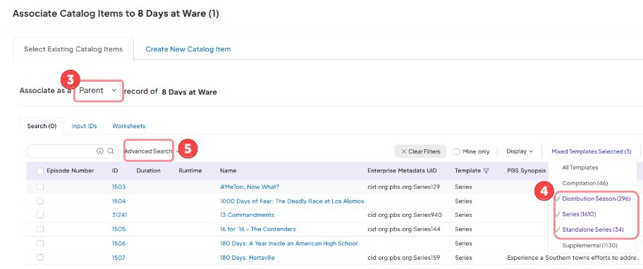 2. User associates appropriate parent record as follows: - Standalone OTO Parent = Series, Standalone Series, or Distribution Season